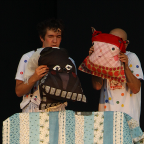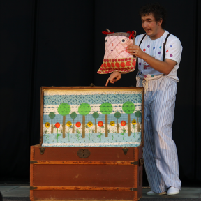 Smešna gospoda Veselin in Zmeda sta sicer polna norčij, a jima s pomočjo brihtnih gledalcev uspe iz velikega kovčka potegniti in odigrati znano zgodbico o Rdeči kapici. Preproste blazine s pomočjo domišljije in igralske spretnosti postanejo lutke: Rdeča kapica, volk, babica in lovec, da pa napetost v zgodbi ne bi bila pregrozna, vskočita še zajec in polž.