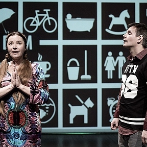 /… uprizoritveno težišče je vendarle v igralskem podajanju, za katerega s plastično izoblikovanimi značaji, humorjem in z dinamičnim prikazovanjem dramske situacije poskrbi celoten ansambel kranjskega gledališča. /