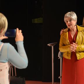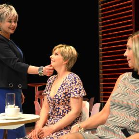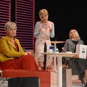 /... No v drami Vinka Möderndorferja ni čisto tako, saj le dve zreli ženski, igrata ju Darja Reichman in Vesna Jevnikar, pijeta alkohol in pred gledalci razgaljata vse pote in praznine svojih življenj. Tretja, v uprizoritvi Vesne Slapar pa ju opazuje, nekaj malega doda in v določenem trenutku izpove svojo največjo travmo. Ta se izkaže kot nabira z emancipatornim potencialom, ki je pozneje tudi izpeljan. /