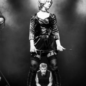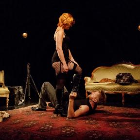 /… igralko Vesno Pernarčič smo lahko občudovali že v najrazličnejših vlogah, a še nikoli v tako vroči podobi slovenske 'Venere'. Z bičem v roki, usnjenimi fetišističnimi škornji, mrežastimi nogavicami s pasom in korzetom …/