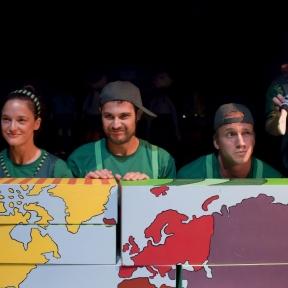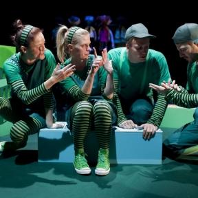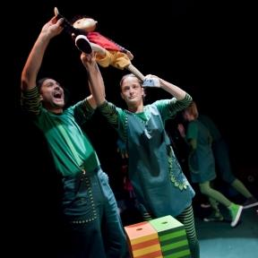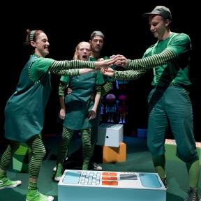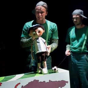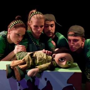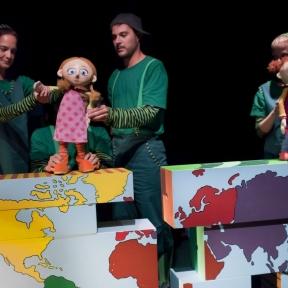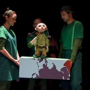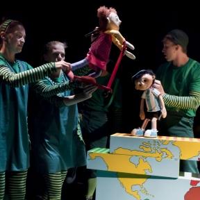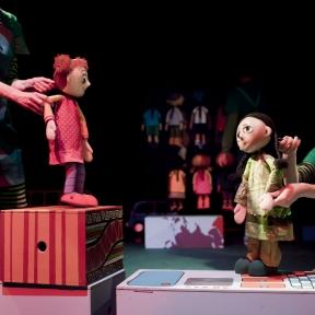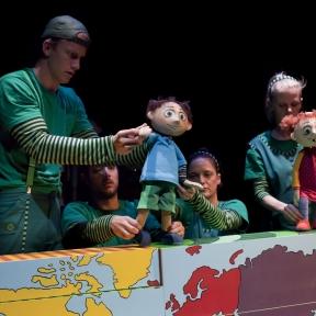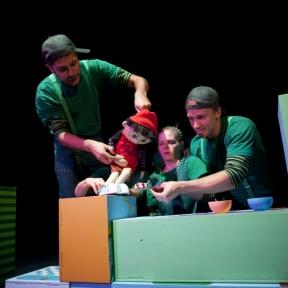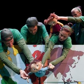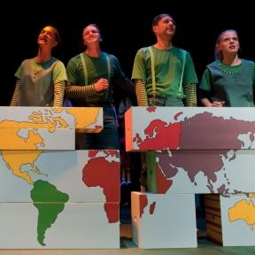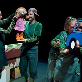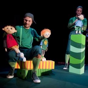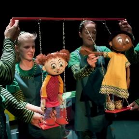 Po motivih slikanic Vsi tukaj, vsi skupaj (Anja Tuckerman in Tine Shulz) in Kako se je pogumni očka nehal bati tujcev (Rafik Schami in Ole Konnecke) v prevodu Tine Mahkota (Založba Zala, 2015)