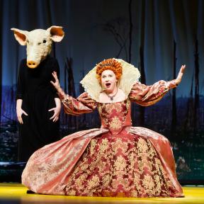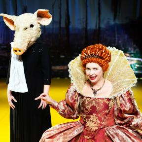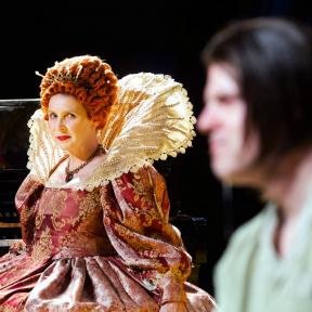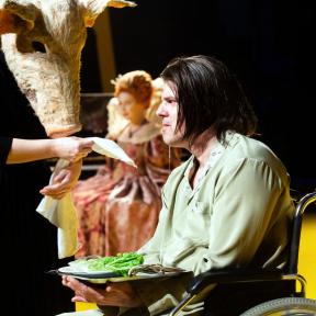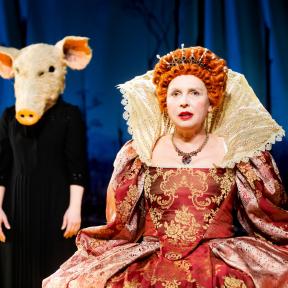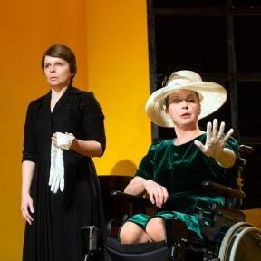 Darja Reichman je odlična izbira za lik gospodarice na vozičku (tako zelo drugačen od njene odlične prav tako na voziček priklenjene vloge Clare v prizoritvi Pred upokojitvijo), zlasti v drugem delu kot elizabetinsko našemljena kraljica z obrazno mimiko in histeričnimi premiki ustvari prepričljivo kreacijo.