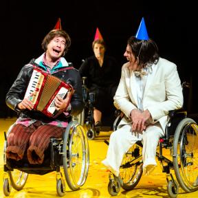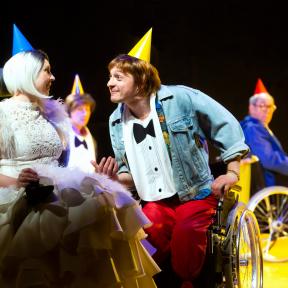 “Moja hendikepiranost na odru šokira” - prisluhnite pogovoru s Simonom Šerbinkom, ki je v predstavi Zabava za Borisa odigral naslovno vlogo.